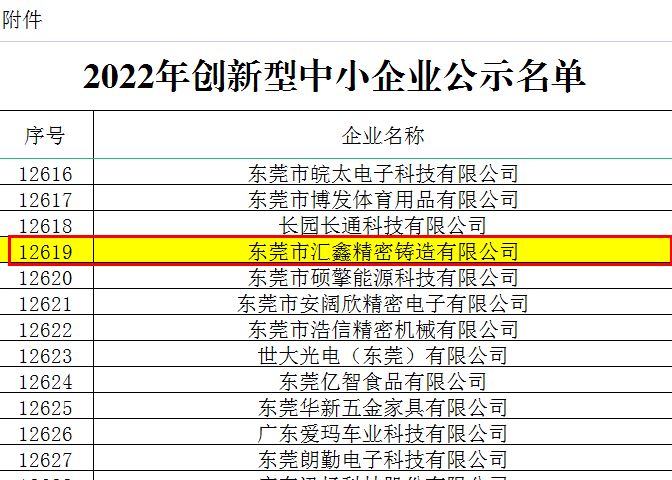 喜報|東莞市匯鑫精密鑄造有限公司榮獲廣東省“2022年創(chuàng)新型中小企業(yè)”認定!
